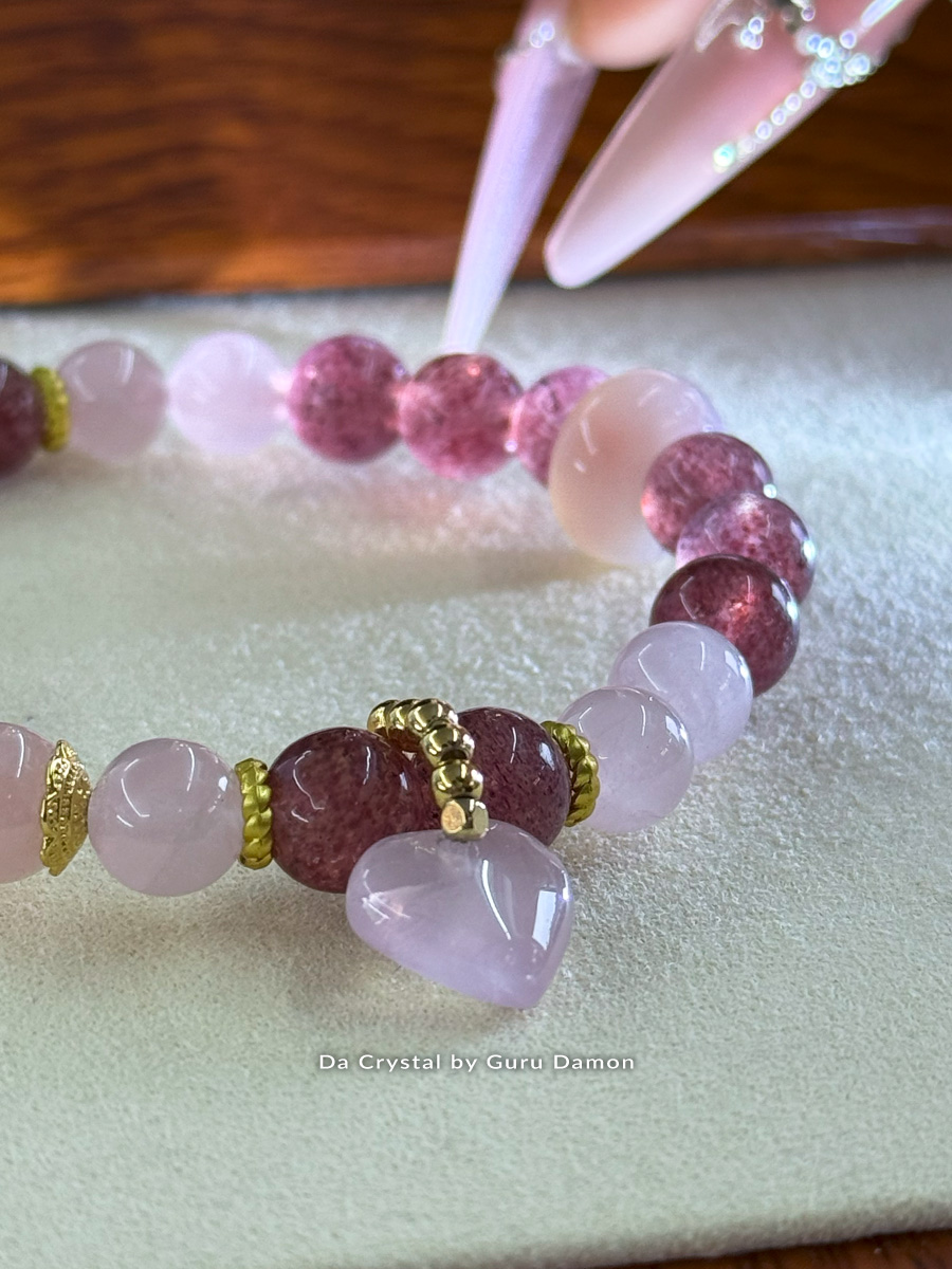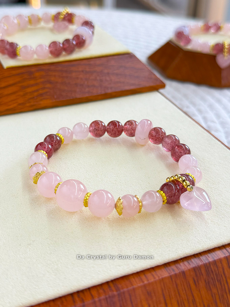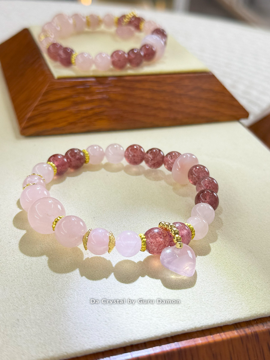 Everna Love Series 水晶手链结合了 粉晶 的温柔与 草莓晶 的欢愉闪耀。Everna 寓意“永恒的爱”,象征跨越距离与时间的长久情感,温柔环绕你的心,带来同理心、和谐与情绪疗愈。